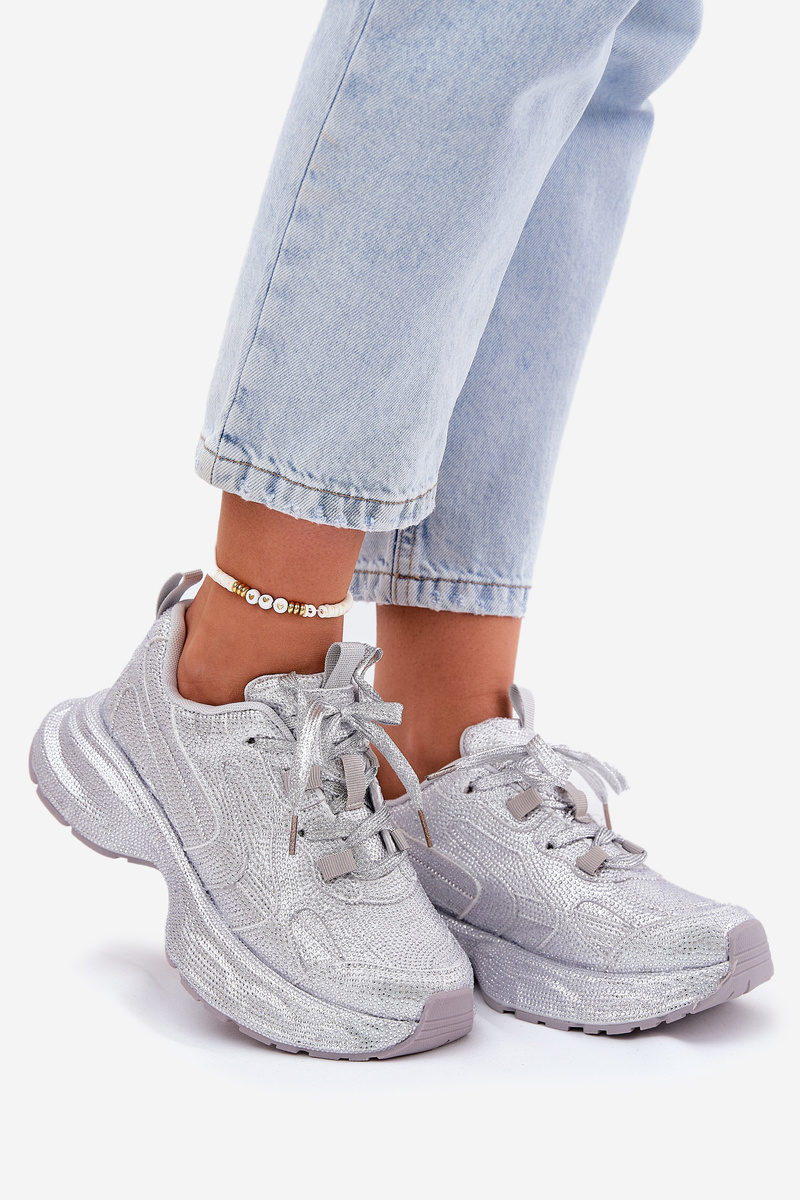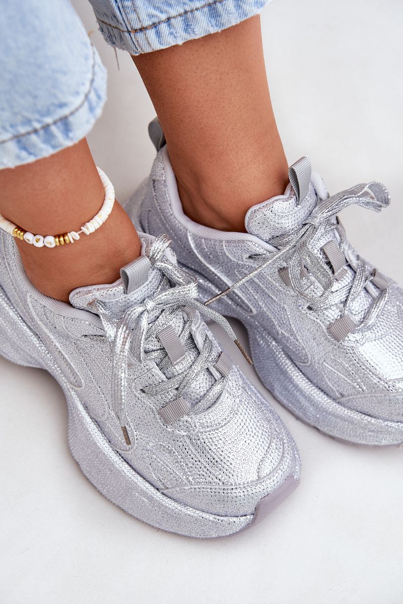 Zdobione Cyrkoniami Sneakersy Damskie Srebrne Porrot