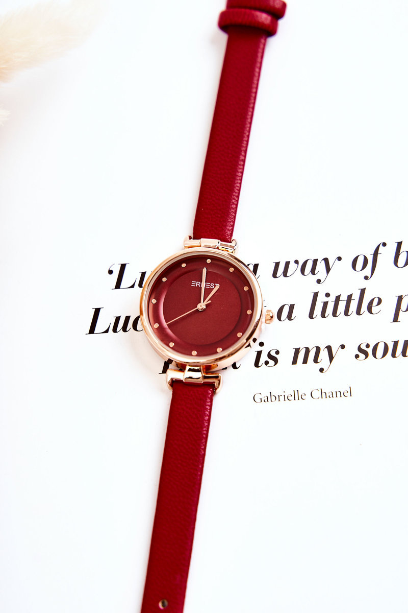 Biżuteria jest świetnym uzupełnieniem nie tylko tych eleganckich, ale i codziennych stylizacji. Delikatne łańcuszki, bransoletki, broszki - idealnie podkreślą Twój styl. Koniecznie sprawdź naszą ofertę akcesoriów. Zegarek na regulowanym pasku wykonanym z eko skóry. Zapinany na sprzączkę. Tarcza w odcieniu paska. Nie zawiera niklu. Świetny jako dodatek do Twoich stylizacji. Koniecznie musisz go mieć!
