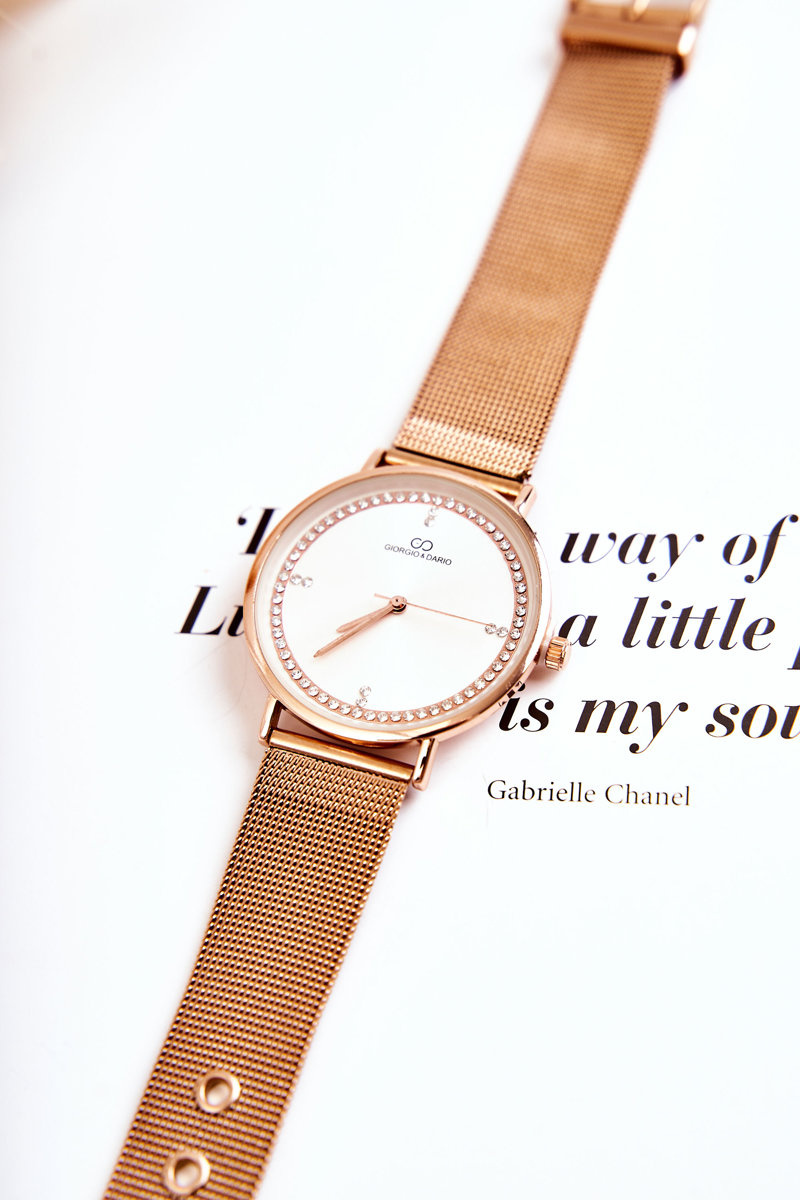 Zegarek Damski Analogowy Z Cyrkoniami Różowe Złoto Giorgio & Dario