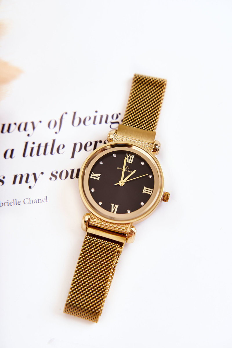 Zegarek Damski Bransoleta Na Magnes Złoto-Czarny Giorgio & Dario