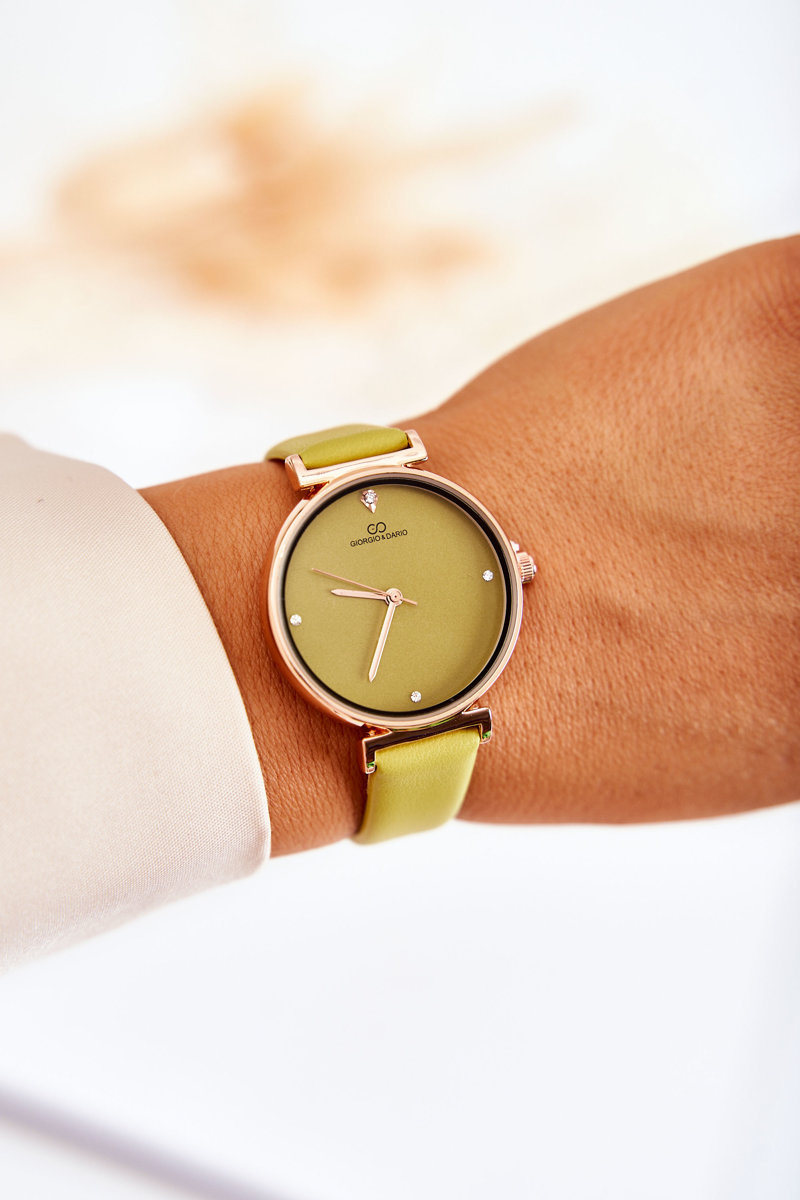 Zegarek Damski Klasyczny Skórzany Pasek Zielony Giorgio&Dario