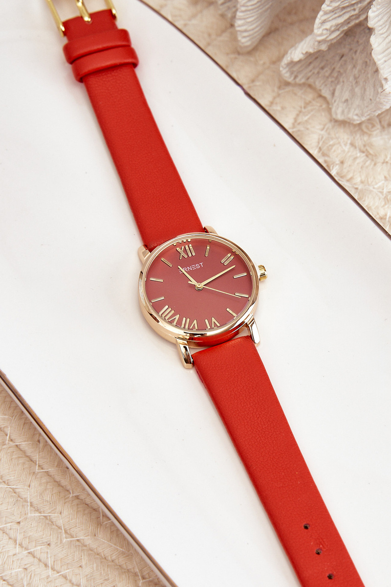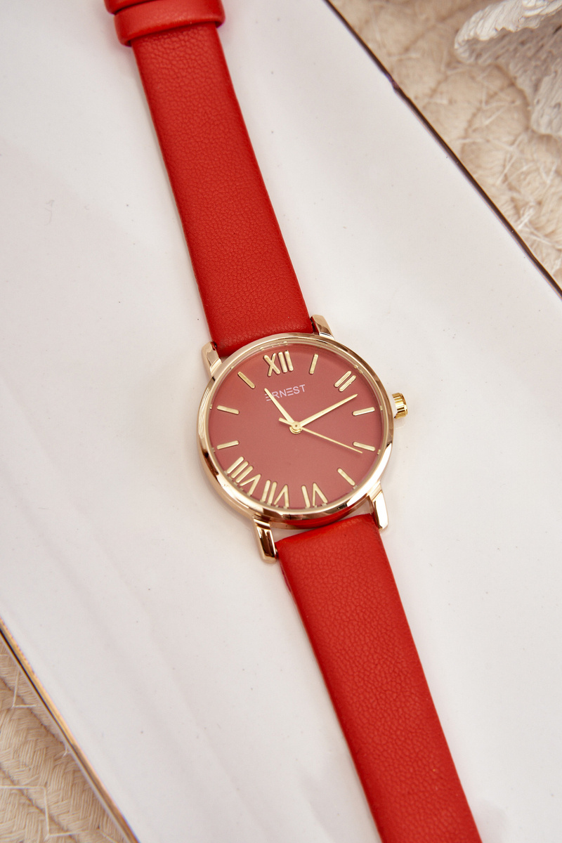 Biżuteria jest świetnym uzupełnieniem nie tylko tych eleganckich, ale i codziennych stylizacji. Delikatne łańcuszki, bransoletki, broszki - idealnie podkreślą Twój styl. Koniecznie sprawdź naszą ofertę akcesoriów. Zegarek marki Ernest. Pasek wykonany z eko skóry nadaje mu eleganckiego charakteru, pozwalając na noszenie zarówno na co dzień, jak i podczas bardziej oficjalnych wydarzeń. Dzięki swojej wszechstronności i subtelnej elegancji zegarek ten z łatwością dopasuje się do każdej stylizacji, dodając jej wyjątkowego uroku i klasy.
