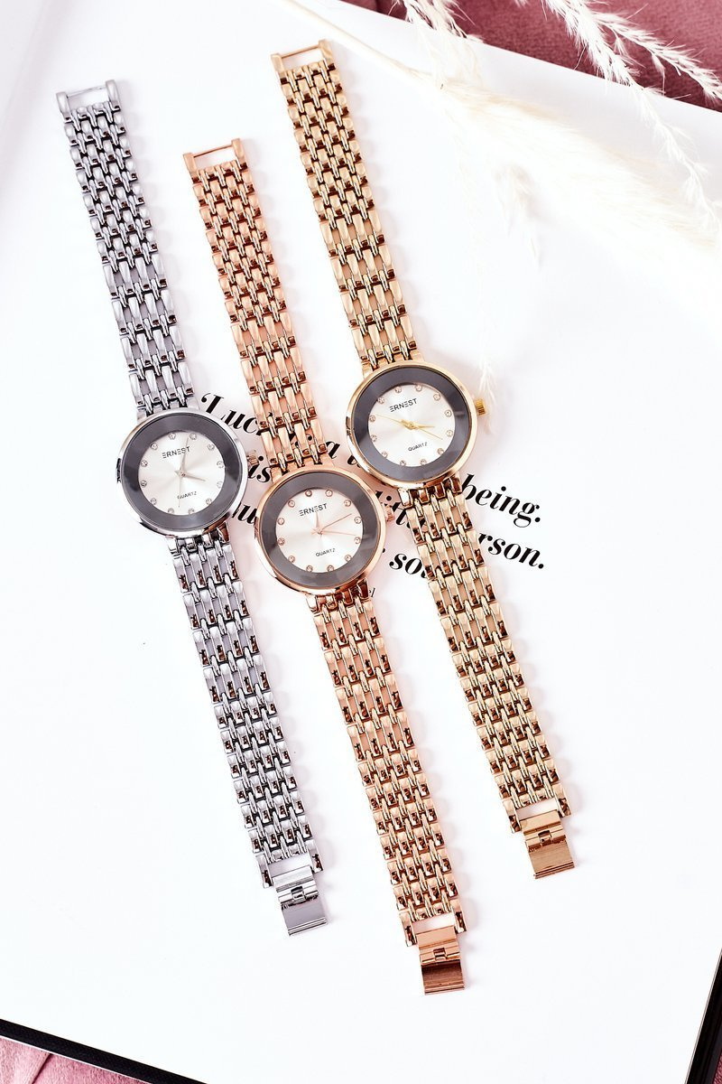 Zegarek Na Bransolecie Z Cyrkoniami ERNEST Różowe Złoto