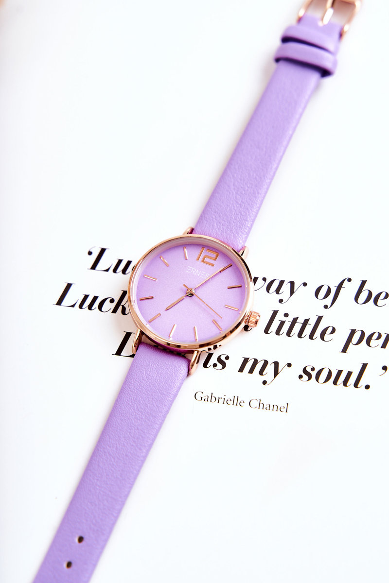 Zegarek Na Skórzanym Pasku Bez Niklu Ciemnofioletowy ERNEST