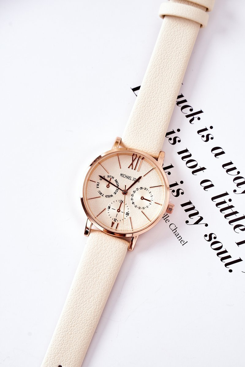 Zegarek Na Skórzanym Pasku Michael John Beżowy