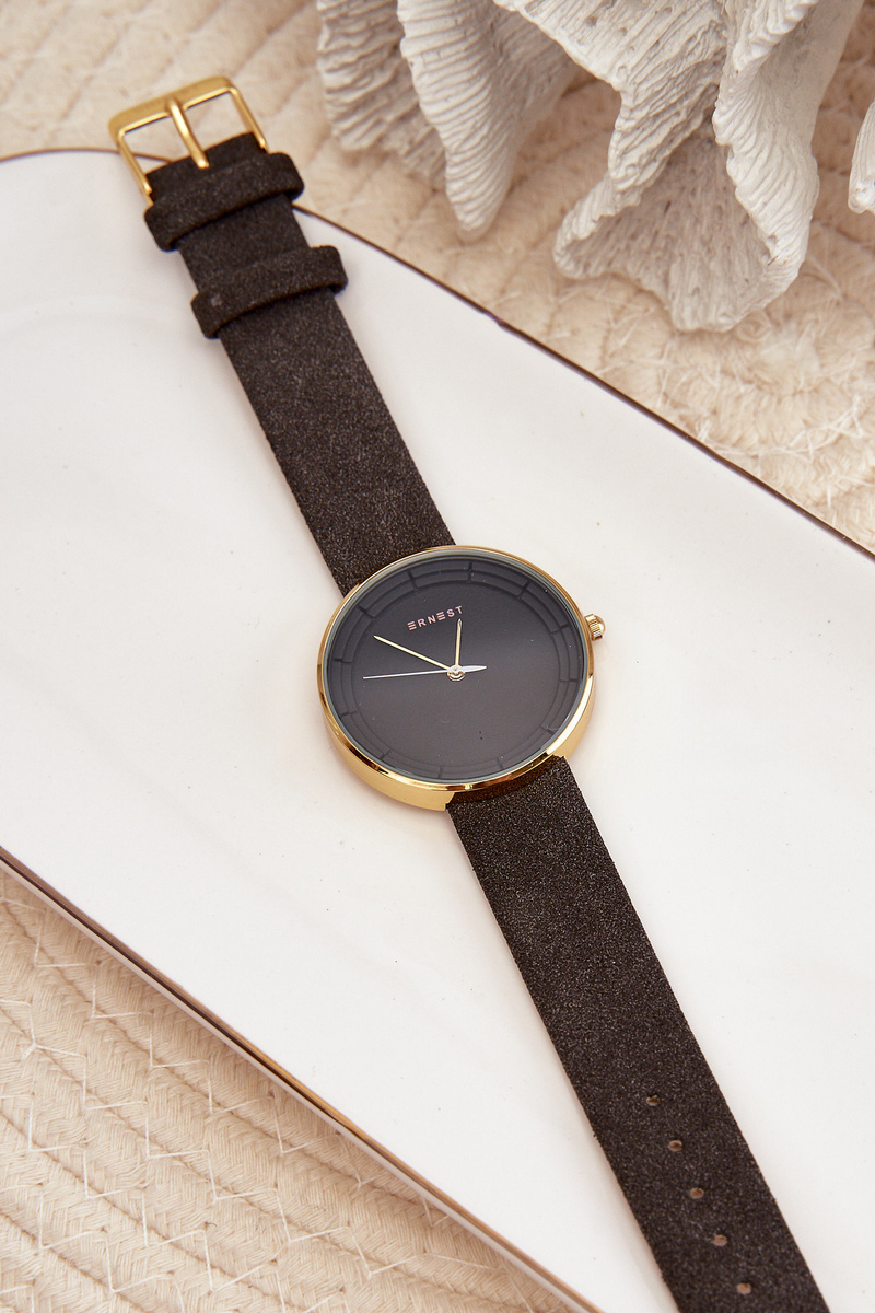Zegarek Pasek Zamsz Damski Bez Niklu Czarny Ernest E94195