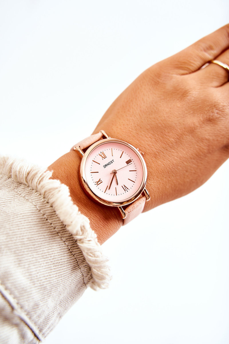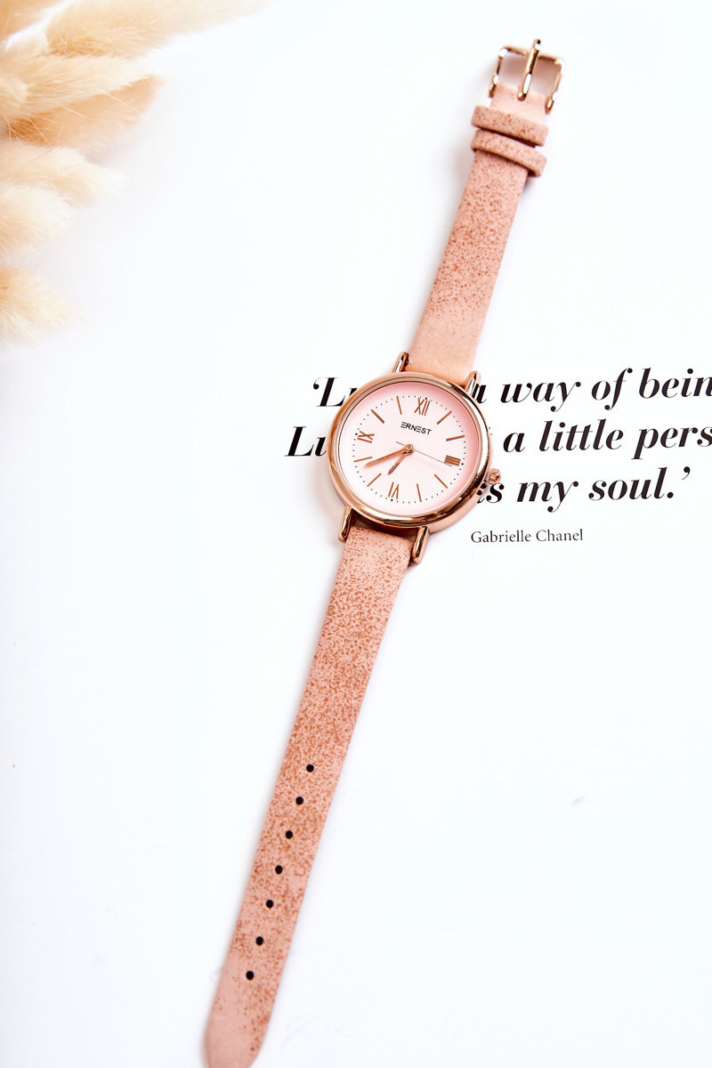 Zegarek Pasek Ze Skóry Damski Bez Niklu Jasnoróżowy Ernest