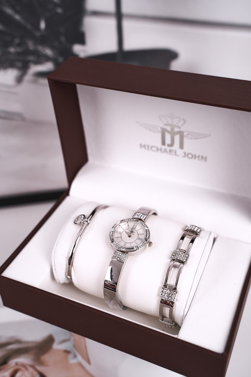 Zestaw Damski Zegarek i Dwie Bransoletki Michael John Srebrny