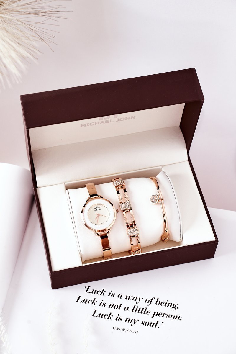 Zestaw Zegarek i Dwie Bransoletki Michael John Różowe Złoto