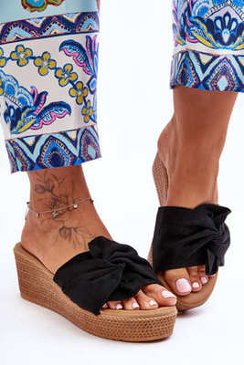 Mokasyny Damskie Zamsz Platforma Czarne Larey