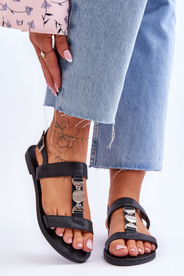 Sandały Damskie Płaskie Ozdobny Pasek Czarne Berry