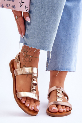 Sandały Damskie Płaskie Ozdobny Pasek Złote Berry