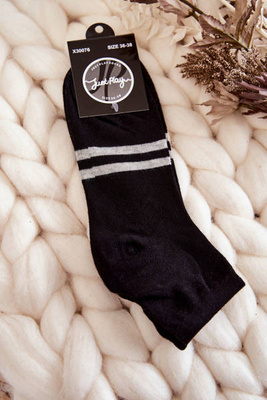 Skarpety Damskie Bawełna Sport Paski Czarne