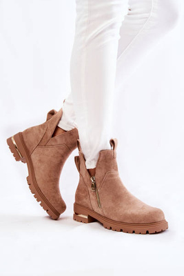 Botki Workery Zamsz Ocieplane Płaski Obcas Jasnobrązowe Salome