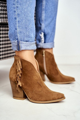 Botki Damskie Beżowe Welurowe Exquisite 1172