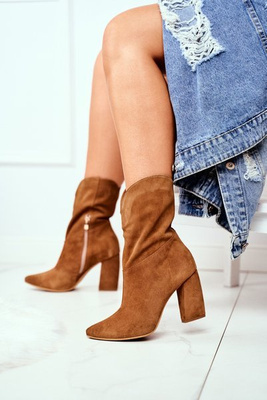 Botki Damskie Skórzane na Obcasie Laura Messi Camel 2133