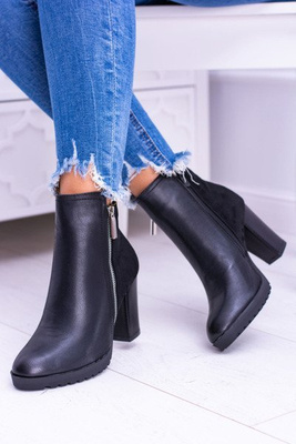 Czarne Damskie Botki Na Słupku Laura Messi 1821