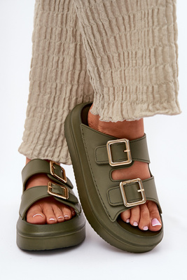 Damskie Klapki Ze Złotymi Klamrami Na Masywnej Platformie Zielone Zorila