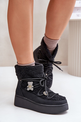 Damskie Śniegowce Na Platformie Z Przypinkami I Futerkiem Czarne Almatiza