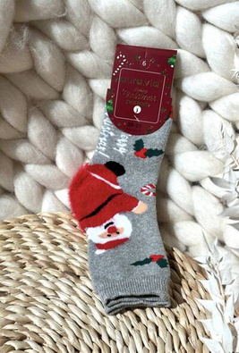 Skarpety Dziecięce Z Mikołajem Świąteczne Bawełniane Szare