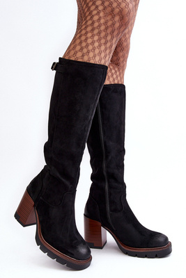 Kozaki Damskie Masywny Słupek Ocieplane Czarne Alzeta 58106