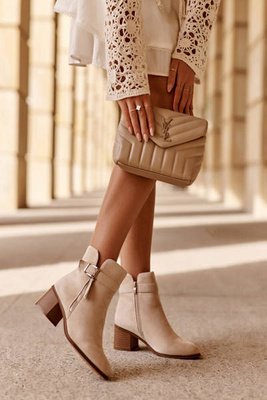 Botki Zamsz Obcas Klamra Beżowe Bronte 5733